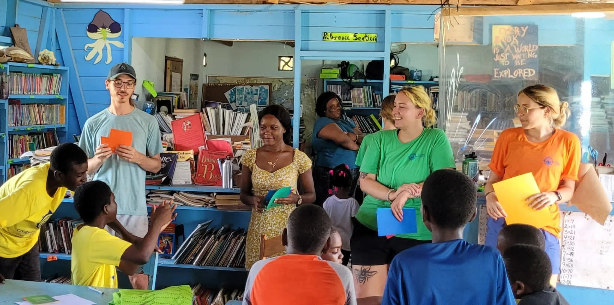 Concurrently, the debris and flood team worked with the education team in the library to create lesson plans and activities to teach the village youth about our research. The flood team discussed emergency preparedness with the youth and created an ideal emergency flooding kit. Then the flood team worked with the youth to further their understanding of how flooding works and how to read topographic maps. The debris team brought out the quadrats used in data collection and let the kids find trash hotspots around the courtyard. They recorded the types of trash and natural debris found inside the quadrat and mapped them, before picking up plastic and disposing of them in the recycling receptacle.